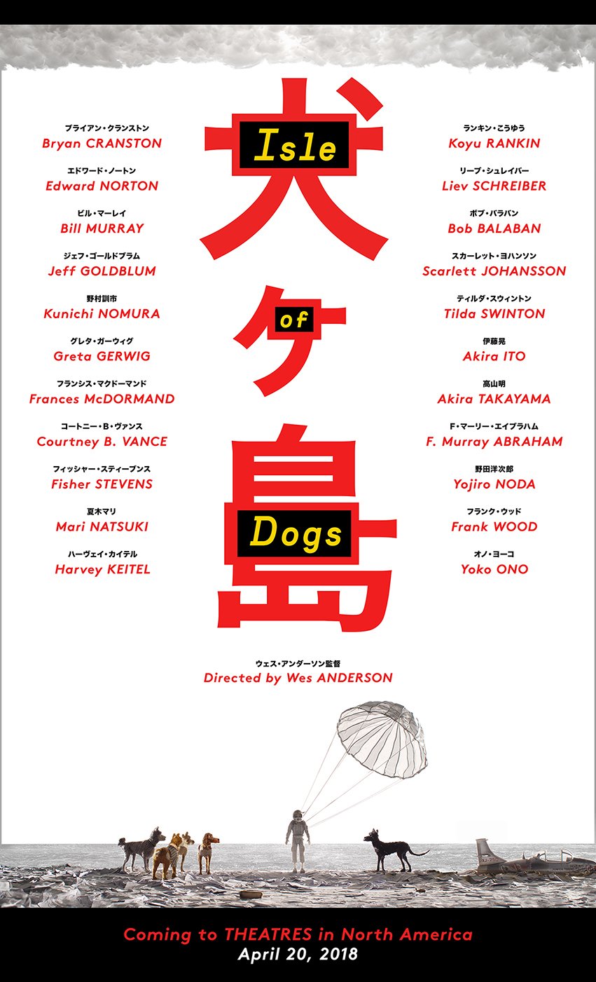 From this, combined with the original concept art, the frustratingly few details Wes releases in his video announcing the film, and the new poster for the film, we can conclude several things: one, the film will have a Japanese-element to it. (Further evidence for this comes from the fact that several of the voice actors credited for the film are Japanese actors.) Secondly, many of the main characters in the movie will be dogs and they will most likely be anthropomorphic canines (as actors have been slated to play dog characters). Thirdly, something else we can also count on is that the film will contain the same Wes Anderson humor and trademark directorial style. Although other than these few givens, there is little else we can be certain of, which leaves plenty of room for us to be amazed in the upcoming months as more material gets released as we get closer to the release date of the film, which is currently set to come to North American theaters April 20, 2018.