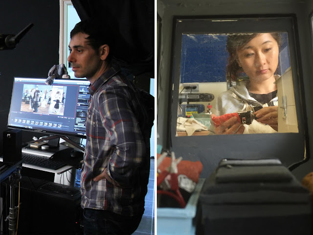 | Nadine Buss (cinematographer) and Max Porter (co-director) are doing the final lighting check before shooting. Photo courtesy of Ru Kuwahata. |